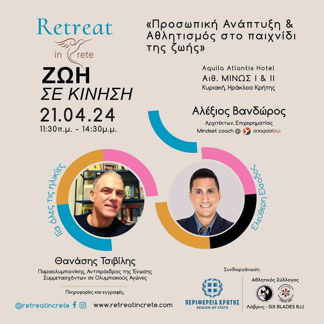 Προσωπική Ανάπτυξη & Αθλητισμός στο παιχνίδι της Ζωής!Ο Αλέξιος Βανδώρος ξανά στο Ηράκλειο!Το Retreat in Crete με την υποστήριξη της Περιφέρειας Κρήτης και σε συνεργασία με τον Αθλητικό Σύλλογο ΛΑΒΡΥΣ […]